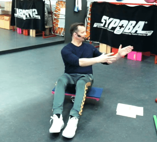 Das Element Bh-Ba gehört zur vertikalen Position – durch die sitzende Position wird die gesamte Rumpfmuskulatur lokal gekräftigt ohne zusätzliche spezifische Übungen. Achtung: Bei Teilnehmer mit Rückenbeschwerden in der LWS – ist Vorsicht geboten – d.h. sobald der TN über die Rumpfstabilität die Haltung nicht mehr aufrechterhalten kann – sollte das Element kurzzeitig abgebrochen werden. Jedoch dient dieses Element auch als Zeichen des Fortschrittes – wenn beim TN diese Beschwerden nicht mehr auftauchen!!! | |