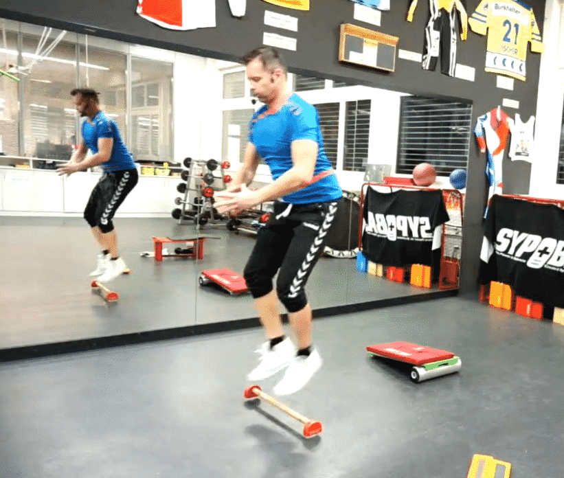 Erweitert wird dieses Element durch ausgewählte Übungen aus anderen Elementen! Man hat die Wahl aus 3 Gruppen, d.h. man hat die Wahl im Bereich Balance üben oder man wählt ein Element aus den horizontalen Lagen oder aus den vertikalen Lagen. Je nachdem was man wählt kann es eher ausruhend sein oder in die totale Erschöpfung führen. Dabei gibt es keine Vorgaben, jedoch sollte der Wechsel möglichst ohne grossen Aufwand (Zeit- & Materialwechselaufwand) erfolgen und der Übende sollte das Vorgehen bereits kennen.