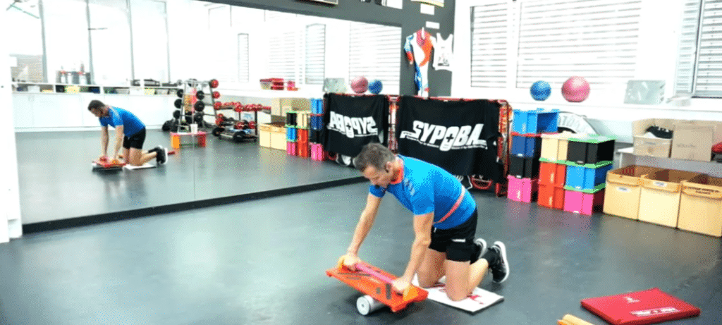 Horizontale Ganzkörperspannung & Kräftigung der vorderen Muskelkette, Rumpfstabilisation, Stützkraft, Stabilisation & Kräftigung des Schultergürtels & der oberen Extremitäten – je nach Reizintensität werden lokal die unteren vorderen Oberschenkel gekräftigt – dank dieser Möglichkeit werden die Patellasehnen ohne grosse Belastung gedehnt und gekräftigt – so dass Patellasehnenentzündungen damit vermieden werden können! Dieses Element ist die Erweiterung des Elements BS aber auch Vorstufe für das Element LS. |