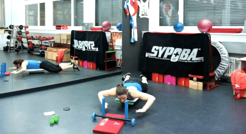 Horizontale Ganzkörperspannung & Kräftigung der gesamten Rückenmuskulatur & obere Extremitäten (Schulter, z.T. Arme), Kräftigung der hinteren Muskelketten, Rumpfstabilisation, Stützkraft, lokale Kräftigung der oberen Rückenmuskulatur, neuromuskluäre Koordination, Kraftausdauer, Verbesserung der Körperwahrnehmung, Vermeidung muskulärer Dysbalancen. Dieses Element gehört mitunter (Ba-st) zur erster Wahl bei Teilnehmer mit Rückenproblemen – entsprechend kann die Intensität relativ schnell erhöht werden ohne dass die Wirbelsäule zusätzliche Belastungen entgegennhemen muss – es ist das einzige Element wo der untere Rücken (bei korrekter Haltung) nicht belastet wird – allerdings NUR bei Benützung von Rolle & Board!!! |