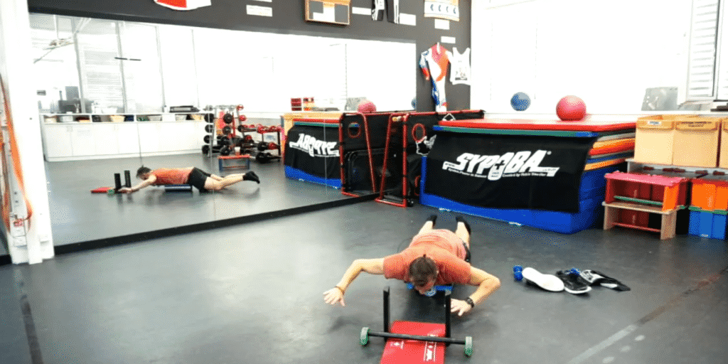Horizontale Ganzkörperspannung & Kräftigung der gesamten Rückenmuskulatur & obere Extremitäten (Schulter, z.T. Arme), Kräftigung der hinteren Muskelketten, Rumpfstabilisation, Stützkraft, lokale Kräftigung der oberen Rückenmuskulatur, neuromuskluäre Koordination, Kraftausdauer, Verbesserung der Körperwahrnehmung, Vermeidung muskulärer Dysbalancen. Dieses Element gehört mitunter (Ba-st) zur erster Wahl bei Teilnehmer mit Rückenproblemen – entsprechend kann die Intensität relativ schnell erhöht werden ohne dass die Wirbelsäule zusätzliche Belastungen entgegennhemen muss – es ist das einzige Element wo der untere Rücken (bei korrekter Haltung) nicht belastet wird – allerdings NUR bei Benützung von Rolle & Board!!! Über die weiteren neuen WZ im Professional last sich die Belastung im mukulären Bereich deuttlich steigern. |