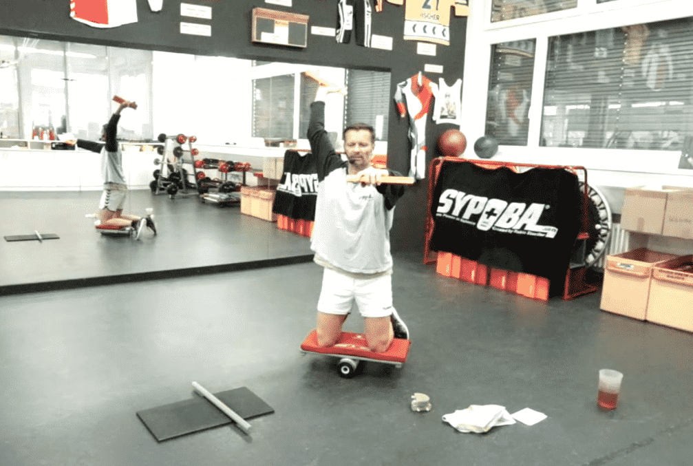 Vertikales Element. Das Element Sh-k-kn befasst in erster Linie um die Beweglichkeit des Schultergelenks und über die Dauer des Elements tritt des Weiteren eine Verbesserung der Schulterstabilität ein. Durch die kniende Position wird zudem das Hüftgelenk lokal gekräftigt ohne zusätzlichen spezifischen Übungen. Durch das allgemeine Kraftmanko und vor allem der Unbeweglichkeit des Schultergelenk ist dieses Element eine sehr gute Wahl – sehr empfehlenswert!.