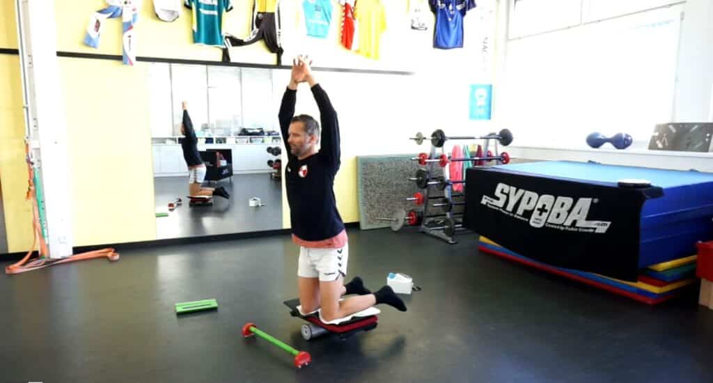 R-kn gehört zur vertikalen Position dank der knienden Position lässt sich dieses Element sehr rasch und mit jedem TN einfach umsetzen. Des Weiteren Dank der Variation der Werkzeuge ist dieses Element eines der vielseitigsten Elemente. Durch dieses Element wird nicht nur der Rücken stark verbessert, sondern der Hauptbereich ist die Hüfte – somit ein MUSS für jeden TN, da die Hüfte im Alltag (je nach Tätigkeit & Sport) sehr stark aber auch sehr wenig belastet wird! |