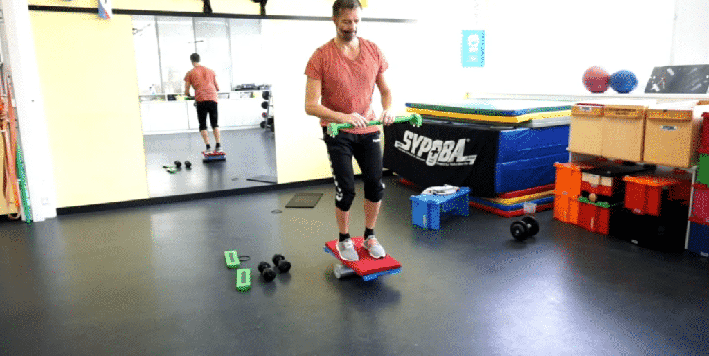 Vertikale symmetrische Ganzkörperspannung, Stabilisation (Rücken-, Hüft-, Knie- & Sprunggelenk) & Kräftigung der unteren Extremitäten (Beine), Rumpfstabilisation, neuromuskuläre Koordination, Kraftausdauer, Verbesserung der Körperwahrnehmung, symmetrische Muskelaktivierung, Vermeidung muskulärer Dysbalancen. Erweiterung der SYPOBA Positionen und somit Verbesserung der allgemeinen Balance.Durch die Dauer des Elements wird zusätzlich die Konzentration und dessen Schwierigkeitsgrad |