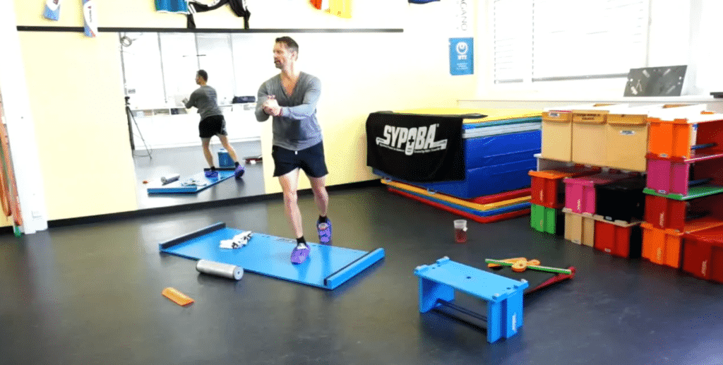 Die Beinkräftigung auf dem Sliding Board ist eines der intensivsten Elemente was die Bein-, Hüft und Beckenmuskulatur angeht. Der Effekt dieser neuen Position = Gatepress ist unglaublich – die gesamte Stützmuskulatur rund um die Hüfte wird bis am Ansatz aktiviert – des Weiteren wird Dank dieser Position auch die Bein- und Fussstellung hergerichtet, entsprechend wird die X-Beinstellung als auch ein Senkfuss damit dezimiert. Dank der rutschigen Fläche braucht man keine weiteren Zusatzgewichte – was wiederum die Gelenke extrem schont – um die Belastung oder Intensität zu erhöhen, sondern lediglich die Positionsbreite der Gatepress soll und wird entsprechend angepasst. Dieses Element ist ein weiteres AHA Erlebnis für alle Teilnehmer! |