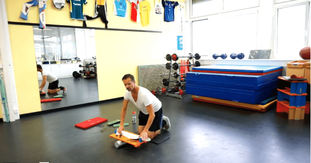 Horizontale Ganzkörperspannung & Kräftigung der vorderen Muskelkette, Rumpfstabilisation, Stützkraft, Stabilisation & Kräftigung des Schultergürtels & der oberen Extremitäten – je nach Reizintensität werden lokal die unteren vorderen Oberschenkel gekräftigt – dank dieser Möglichkeit werden die Patellasehnen ohne grosse Belastung gedehnt und gekräftigt – so dass Patellasehnenentzündungen damit vermieden werden können! Dieses Element ist die Erweiterung des Elements BS aber auch Vorstufe für das Element LS. |