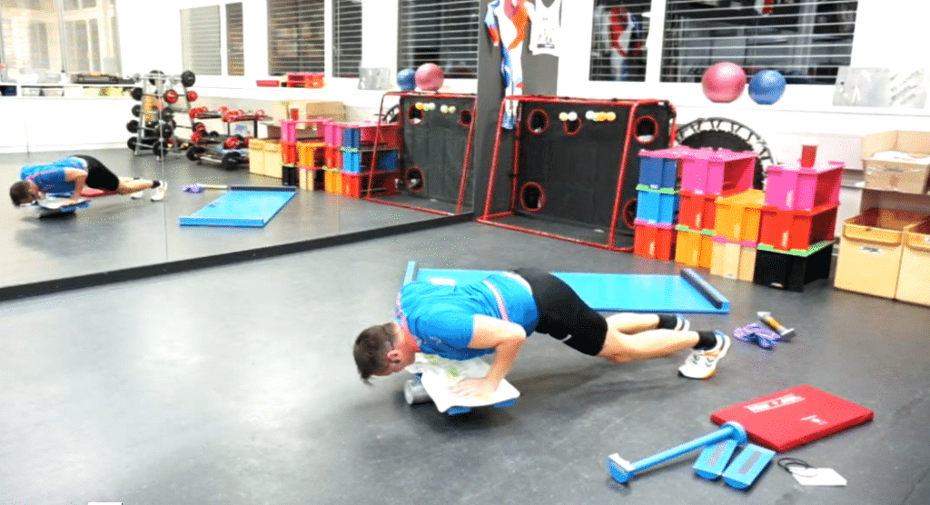 | V-BS & LS | Variation Brückenspannung & Liegestütz | Progressiv Advanced | Profi | Beweglichkeit: Stabilität: Schulter Bauch Rücken Kräftigung: Arme Schulter Bauch Rücken Gelenke: Hand Ellenbogen Schulter Wirbelsäule Hüfte |