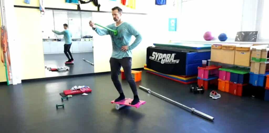Beschreibung / Effekt Vertikales Element. Dieses E gehört zur Gruppe Mentale E, d.h. es werden unterschiedliche Formen der Koordination eingebaut und je nach Schwerpunkt werden unterschiedliche Fertigkeiten aufgerufen. Beim Vis-st wird die gesamte Feinmotorik über die gesamten unteren Extremitäten (Hüfte, Knie, Sprunggelenk), Rücken- & Rumpfmuskulatur angesteuert. Des Weiteren werden über eine zusätzliche Aufgabe im Bereich der oberen Extremitäten die Koordinationsfähigkeiten erweitert, d.h. 2 koordinative Aufgaben gleichzeitig erfüllen! Bei Vis-st geht es vor allem seine Lesestärke zu verbessern, dank der Dauer und dessen Fertigkeiten der E wird eine stärkere Durchblutung auch innerhalb des Auges erreicht was gegen Ende eines E zu einer Leseverbesserung führt! |