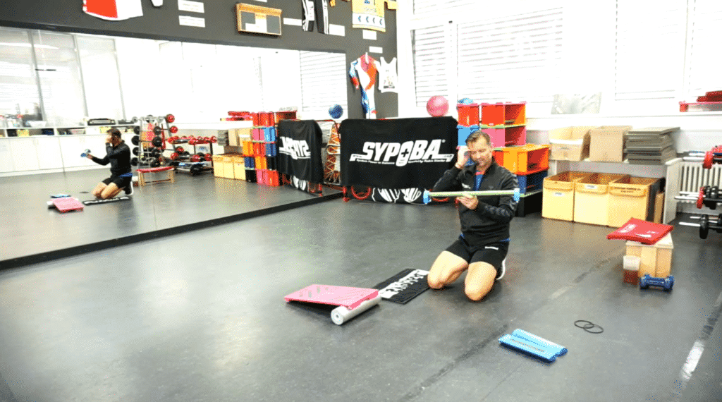 Vertikales Element, welches nachfolgend dem Schulter-kreisen eingebaut werden sollte. Die Übungen sind speziell für den gesamten Aufbau des Schultergelenk und dessen muskuläre Partien. Wie bei allen knienden Elementen kommt natürlich auch das Hüftgelenk zu seiner Priese Gesundheit und Stärkung. Durch die grosse Auswahl an Werkzeugen lässt sich dieses Element noch stärker erweitern und variieren. Ein wichtiges Element um die oberen Extremitäten zu stärken. Ein weiterer Vorteil dieses Elements ist die Dauer und Variabilität – entsprechend müssen nicht hohe Gewichte in Anspruch genommen werden, wodurch bereits früh mit diesem Element gearbeitet werden kann. |