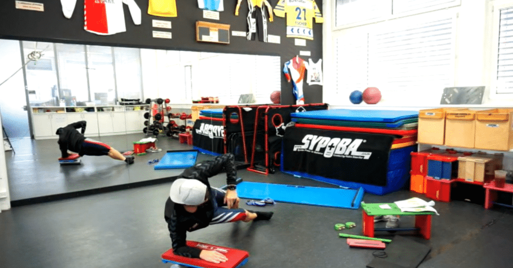 Das Element RGB gehört zur horizontalen Position und ist eines der ältesten Elemente überhaupt. Trotz gewissen positiven „HASS“ – dieses Element zeigt sehr rasch die Grenzen auf = Krämpfe, ist es nach wie vor eines der wichtigsten Element für eine gute Stabilität und Kräftigung der unteren Beuger-Schlinge – resp. im Bereich der Knie. Es gibt kein Gerät oder Übung, welches die gleichen Effekte aufzeigt wie mit Rolle & Board. Das wichtigste dabei ist, dass die Technik entsprechend auch sauber durchgeführt wird! Ausserdem gibt es nur ganz wenige TN bisher, welche dieses Element resp. dessen Übungen 1-beinig ordentlich durchführen können! |