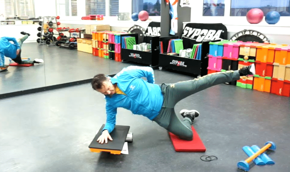 | BS-s-kn | Brückenspannung seitlich kniend | Progressiv | Auflage 2021 | Beweglichkeit: Wirbelsäule Stabilität: Schulter Bauch Rücken Kräftigung: Schulter Bauch Rücken Gesäss seitl. OS Gelenke: Schulter Wirbelsäule Hüfte Knie | Horizontale Ganzkörperspannung & Kräftigung der seitlichen Muskelkette, Bei der BS-s-kniend wird vor allem die seitliche Bein- und Gesässmuskulatur stabilisiert & gekräftigt. Je nach Blockwahl und Reizdauer, kann der muskulären Schmerzpegel ziemlich stark steigen. Besonders interessant wird es beim Einsatz vom Sypoba® (Rolle Board), ab diesem Moment wird ein weiterer Körperteil stark eingebunden = die Schulter! Dabei ist es wichtig, dass man das Board NICHT mir der Hand festhält! Werden Weitere Werkzeuge wie ohne Gummis, Kybun zusätzlich eingebaut, erhöht sich die gesamte muskulären Koordination rund um die Schulter. Im Grunde ein geniales Element um eine Muskelpartie zu trainieren, welche ausserhalb von SYPOBA® eher vernachlässigt wird! Dieses Element ist mukulär nicht zu vergleichen mit der BS-s-gestreckt! |
