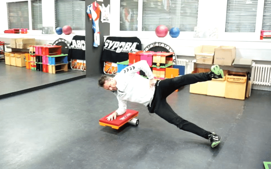 Horizontale Ganzkörperspannung & Kräftigung der seitlichen Muskelkette, In gestreckter Lage wird die gesamte seitliche Beinachse (vor allem Knie- & Sprungkelenk) stabilisiert & gekräftigt. Der wesentliche Unterschied für eine hohe Effizienz ist die Durchführung mit dem SYPOBA® (Rolle Board), da auf fixer Lage die Schultern nicht annähernd dem geschult und gekräftigt werden! Wichtig dabei, dass das Board mit der Hand nicht festgehalten wird, entsprechend erfolgt direkt eine Rückmeldung ob die Balance noch gehalten werden kann oder nicht! Weitere interessante und effiziente Bereiche sind die Werkzeuge! Je nach Wahl der Werkzeuge erhöht sich die gesamte neuromuskuläre Intensittät um ein vielfaches. Zuvor wurde der Unterschied zwischen fixem Bodenkontakt und SYPOBA® (Rolle Board) kurz erklärt, im Bereich der Unteramposition. Führt man die Bs-s-ges mit gestrecktem Arm durch, verändern sich die Kräfte im Gegensatz zur SYPOBA® Anwendung, d.h. mit dem gestreckten Arm werden zwei Gelenke mehr eingebunden (Ellenbogen- & Handgelenk), entsprechend verteilt sich die Belastung von einem, auf 3 Gelenke. Tönt im Grunde nach Enlastung, ist es aber nicht, deswegen empfiehlt SYPOBA® eine fundierte Grundlage mit Rolle/Board bevor man auf die nächste höhere Stufe begibt. Beginnt man zu früh zu belasten entstehen aufkommende Schmerzen im Ellenbogen und Handgelenk. |